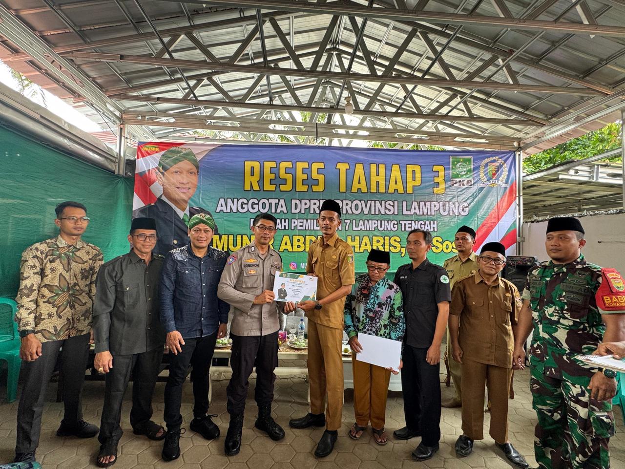 Provinsi Lampung dari Komisi III, Munir Abdul Haris, S.Sos.I, melaksanakan kegiatan reses tahap III secara maraton di 12 titik di Kabupaten Lampung Tengah. Kegiatan yang berlangsung sejak 23 Juli hingga 1 Agustus 2025 ini mencakup enam kecamatan, yakni Sendang Agung, Pubian, Padang Ratu, Bangun Rejo, Gunung Sugih, dan Bandar Mataram.