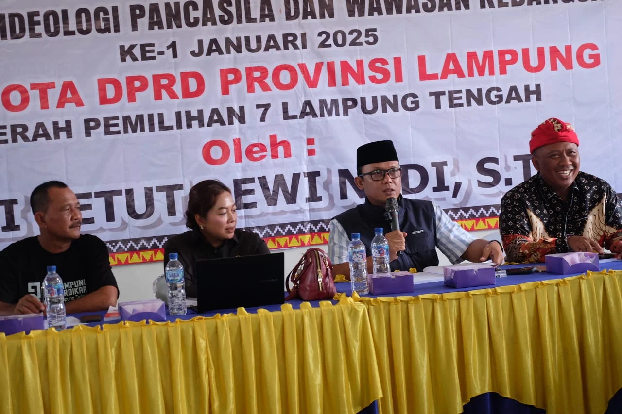 Anggota DPRD Provinsi Lampung Dapil Lampung Tengah, Ni Ketut Dewi Nadi, menggelar kegiatan Sosialisasi Pembinaan Ideologi Pancasila dan Wawasan Kebangsaan di Balai Kampung Swastika Buana (SB 13), Kecamatan Seputih Banyak, Lampung Tengah, pada Minggu (19/1).