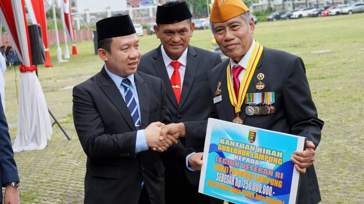 Sebagai wujud penghargaan terhadap jasa para pejuang, dalam rangkaian upacara peringatan Hari Pahlawan juga dilakukan penyerahan bantuan hibah dan kursi roda secara simbolis kepada perwakilan Legiun Veteran Republik Indonesia (LVRI) oleh Sekretaris Daerah Provinsi Lampung, Marindo Kurniawan.