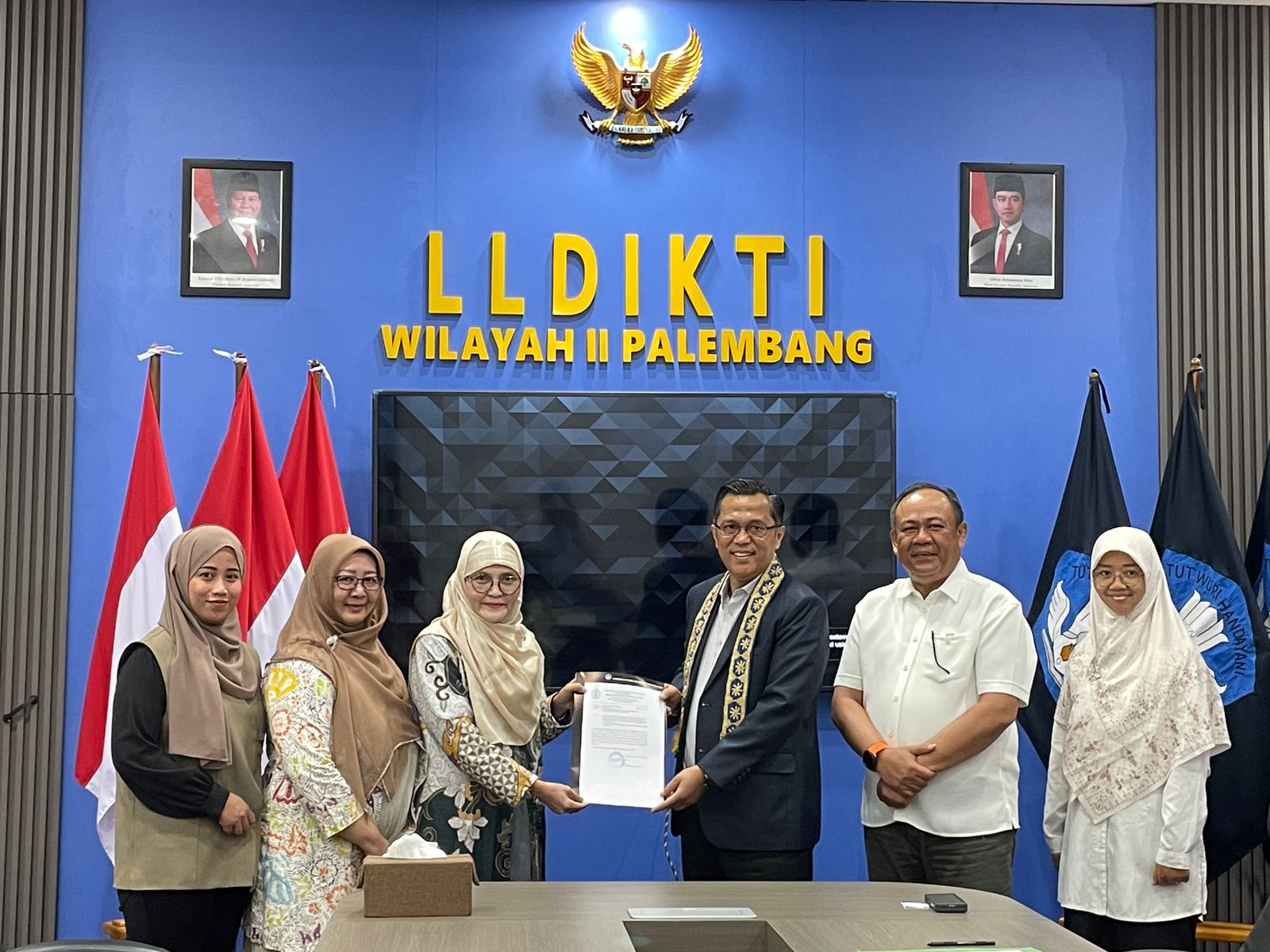 SK tersebut diserahkan langsung oleh Kepala Lembaga Layanan Pendidikan Tinggi (LLDikti) Wilayah II, Prof. Dr. Iskhaq Iskandar, kepada Rektor UML, Dr. Mardiana, M.Pd.I, pada Senin (20/10/2025) di Kantor LLDikti Wilayah II, Kota Palembang. Rektor UML didampingi oleh Wakil Rektor I, Dr. Any Nurhayaty, serta Kepala Lembaga Penjamin Mutu, Ruri Handayani, M.Pd.