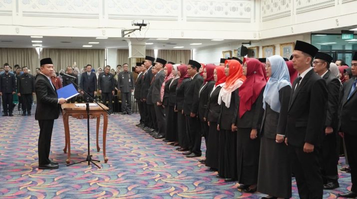 Pelantikan ini mencakup pejabat eselon III, kepala bidang, kepala UPTD, hingga pejabat fungsional di berbagai organisasi perangkat daerah (OPD).